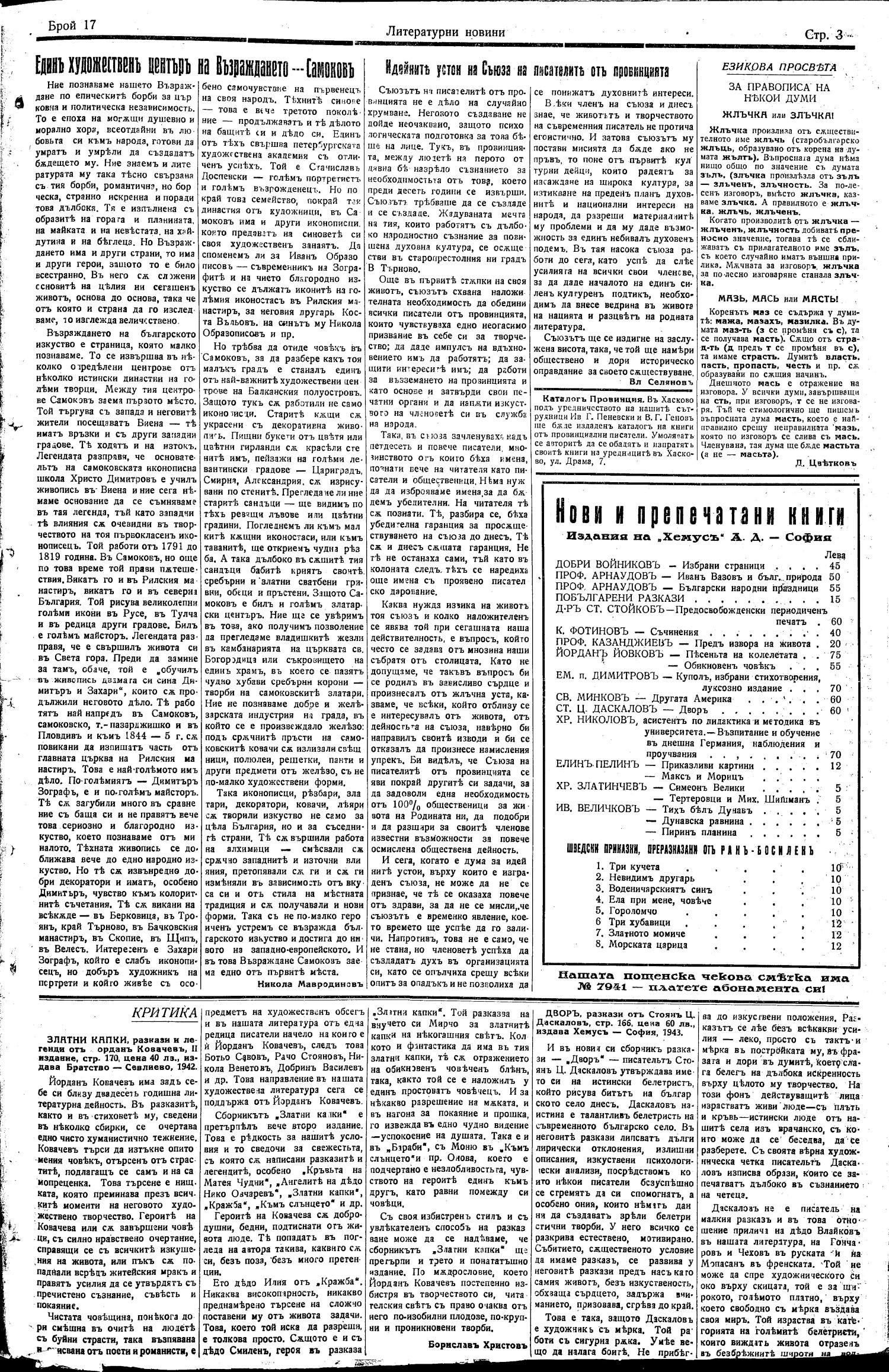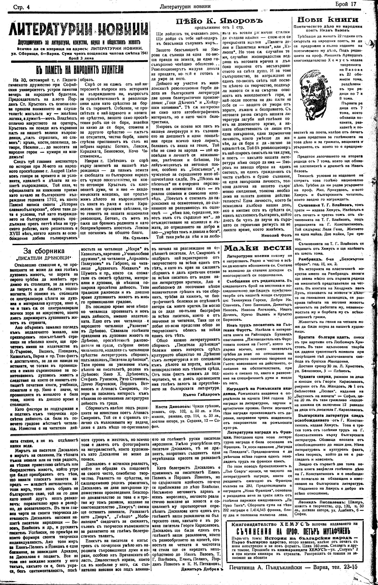 | Дата: | | 15/11/1943, | No. 17 | 3-4 с. | [ виж броя] |