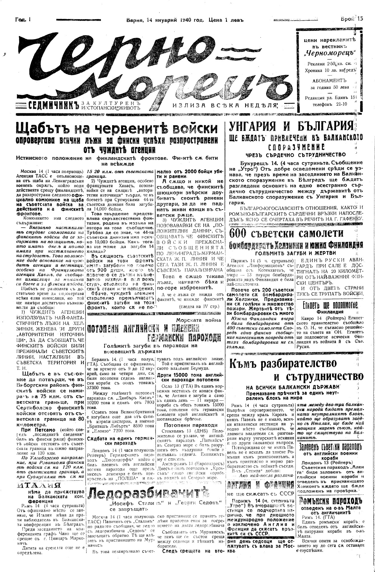 | Дата: | | 14/01/1940, | No. 15 | 1 с. | [ виж броя] |