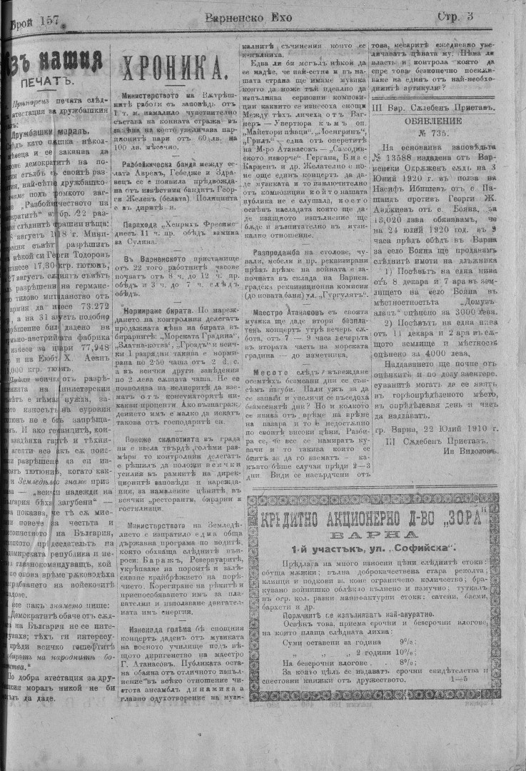 | Дата: | | 24/07/1920, | No. 157 | 3 с. | [ виж броя] |