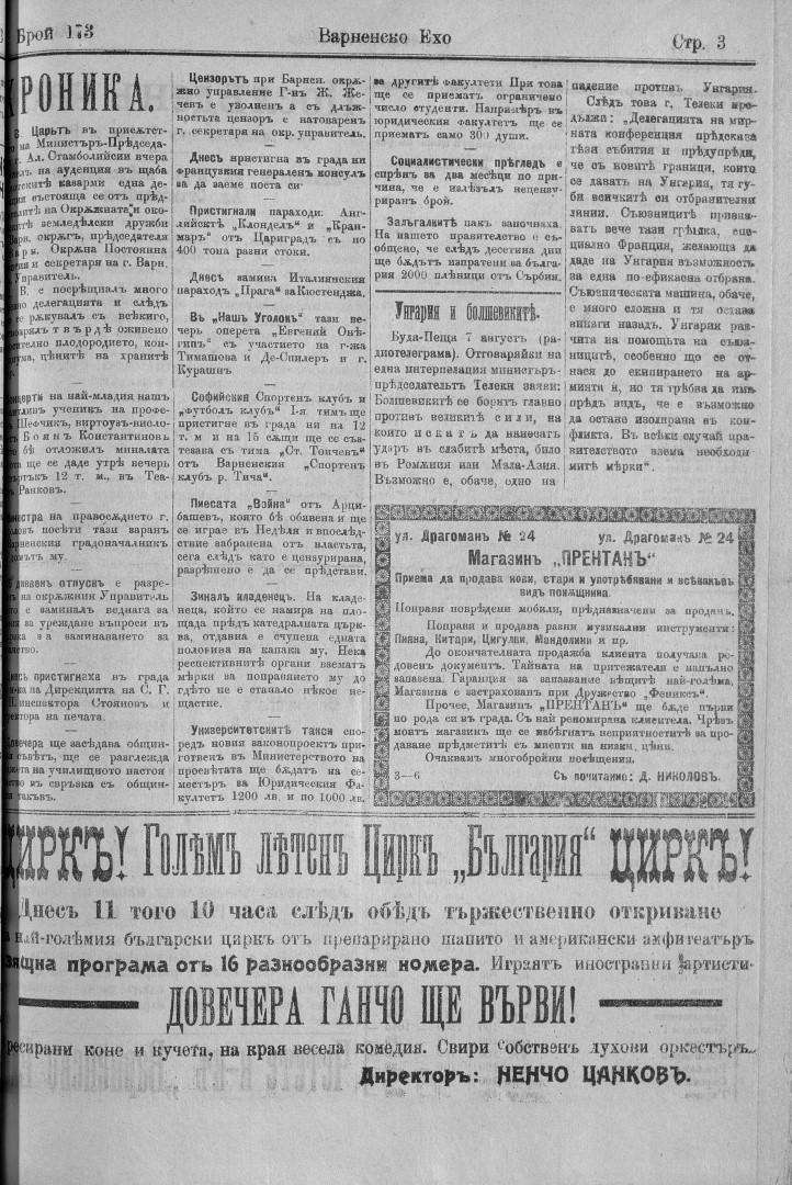 | Дата: | | 12/08/1920, | No. 173 | 3 с. | [ виж броя] |