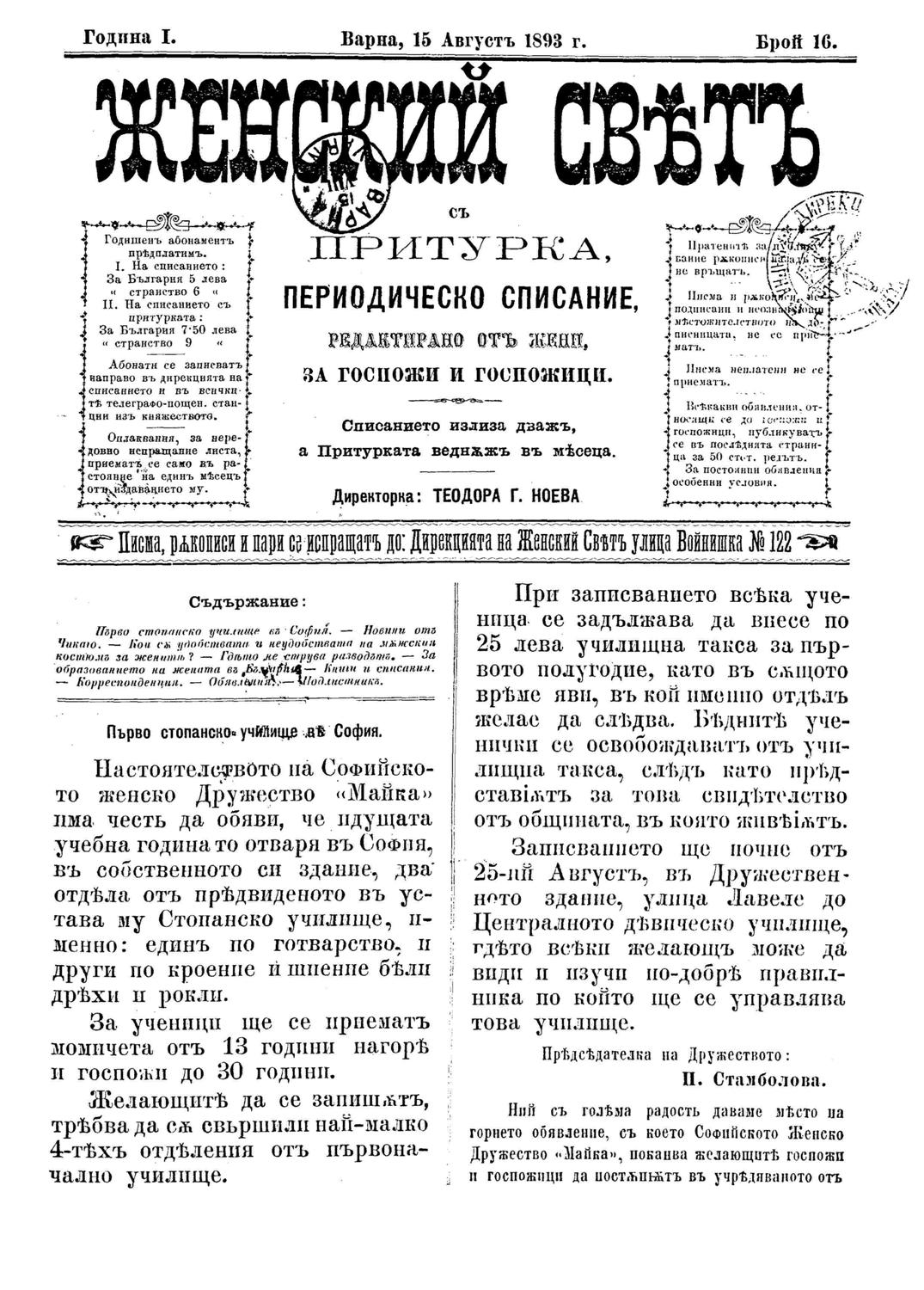 Анотация: Настоятелството на Софийското женско дружество `Майка` отваря два отдела от предвиденото в устава му Стопанско училище. |