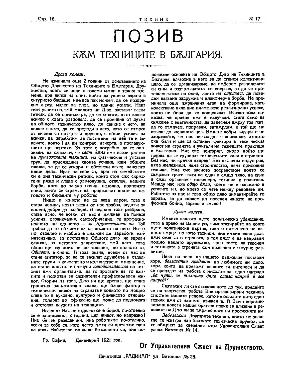 Заглавие: Позив към техниците в България |