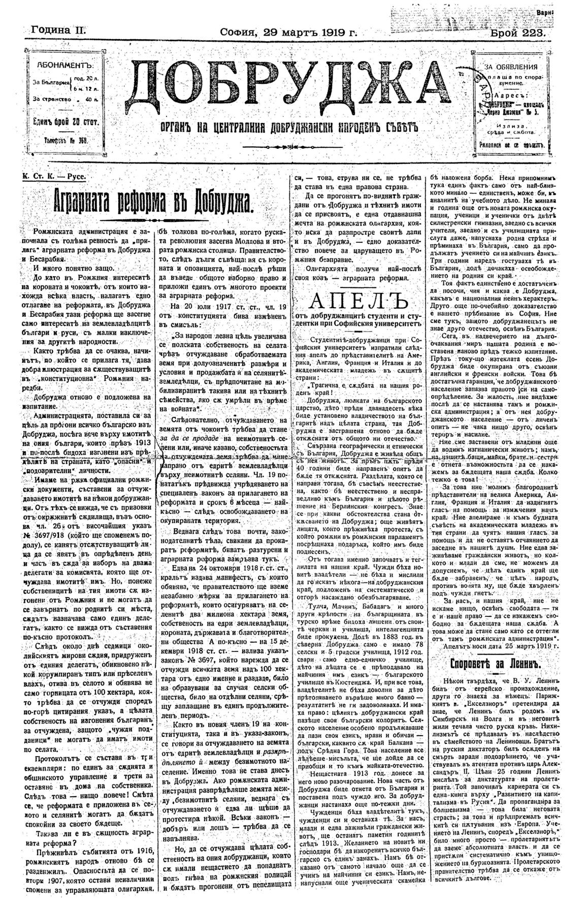 Заглавие: Аграрната реформа в Добруджа |