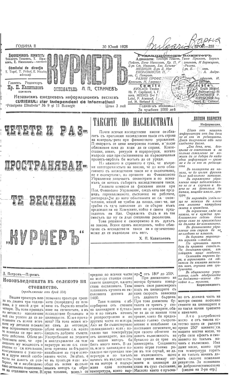 | Дата: | | 30/06/1928, | No. 358 | 1-3 с. | [ виж броя] |