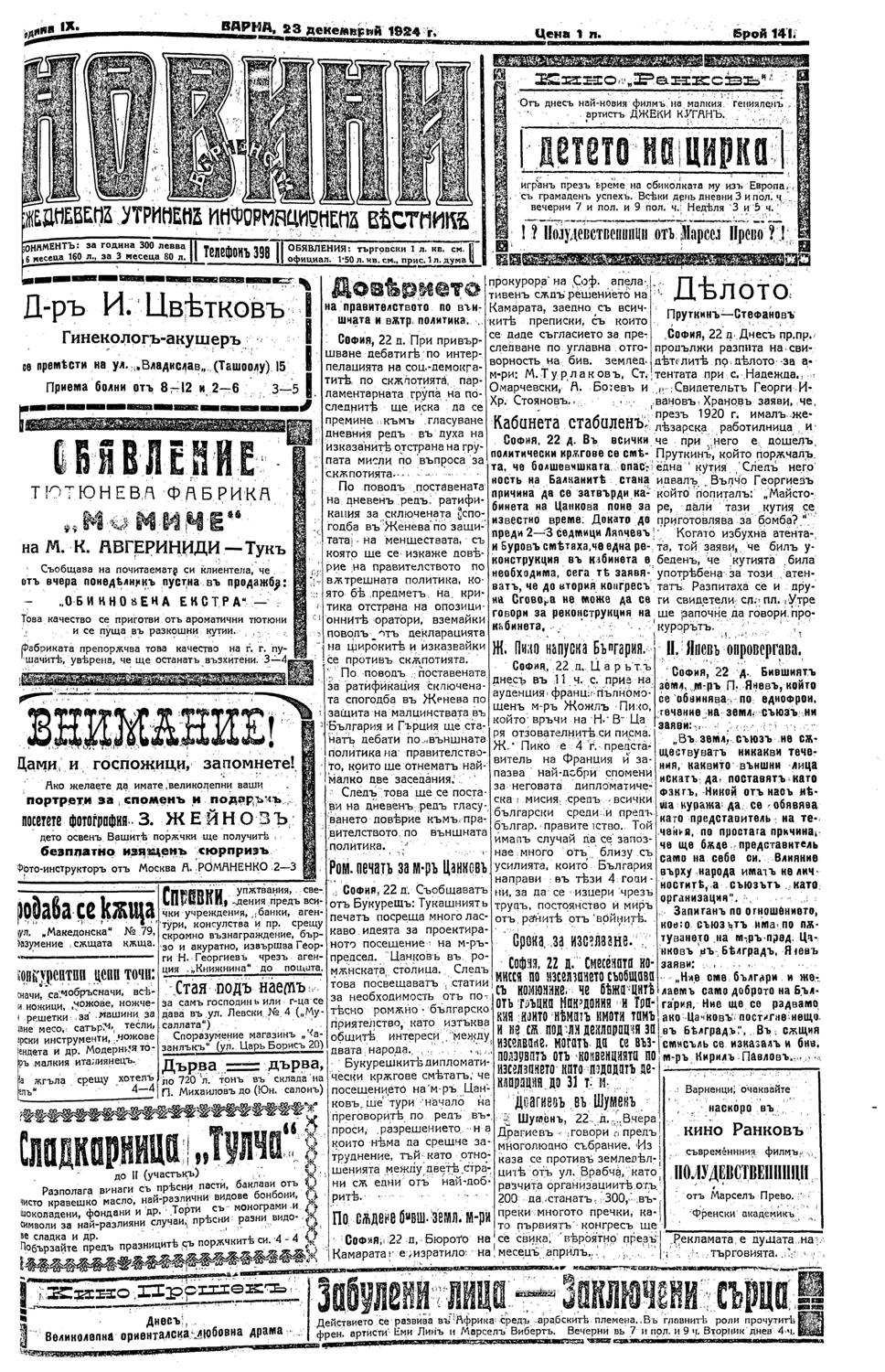 | Дата: | | 23/12/1924, | No. 141 | 1 с. | [ виж броя] |