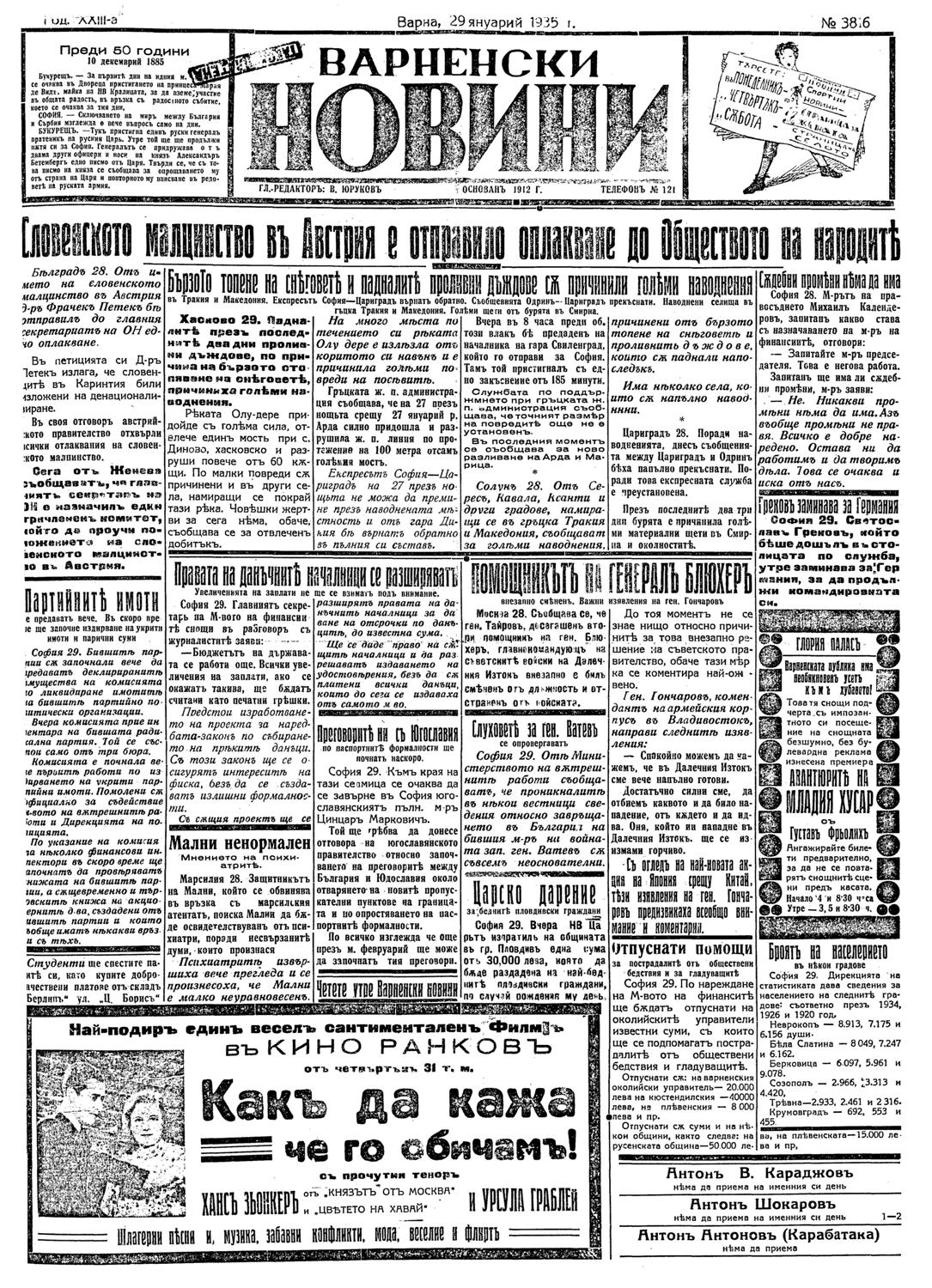 | Дата: | | 29/01/1935, | No. 3816 | 1 с. | [ виж броя] |