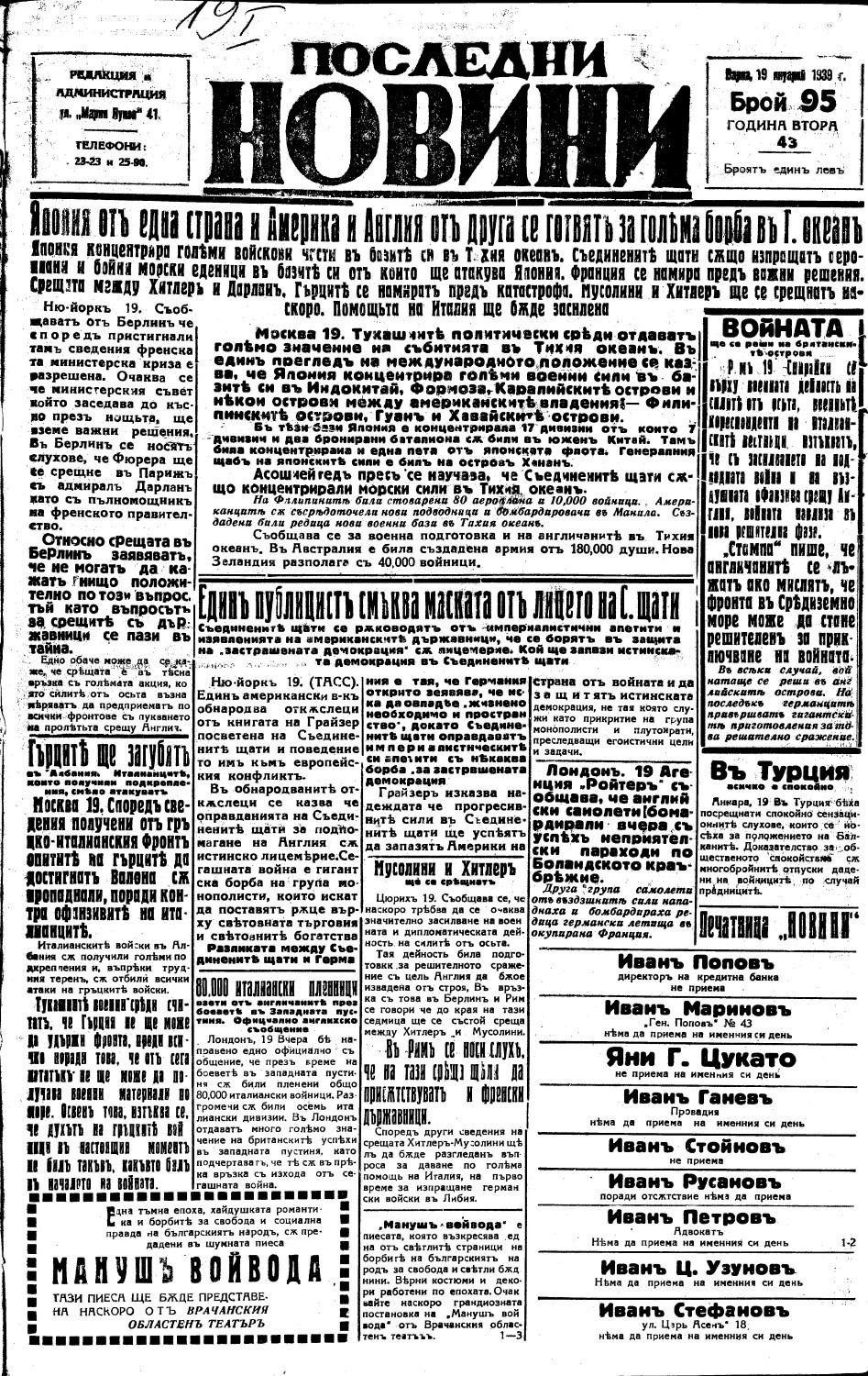 | Дата: | | 19/01/1941, | No. 95 | с. | [ виж броя] |