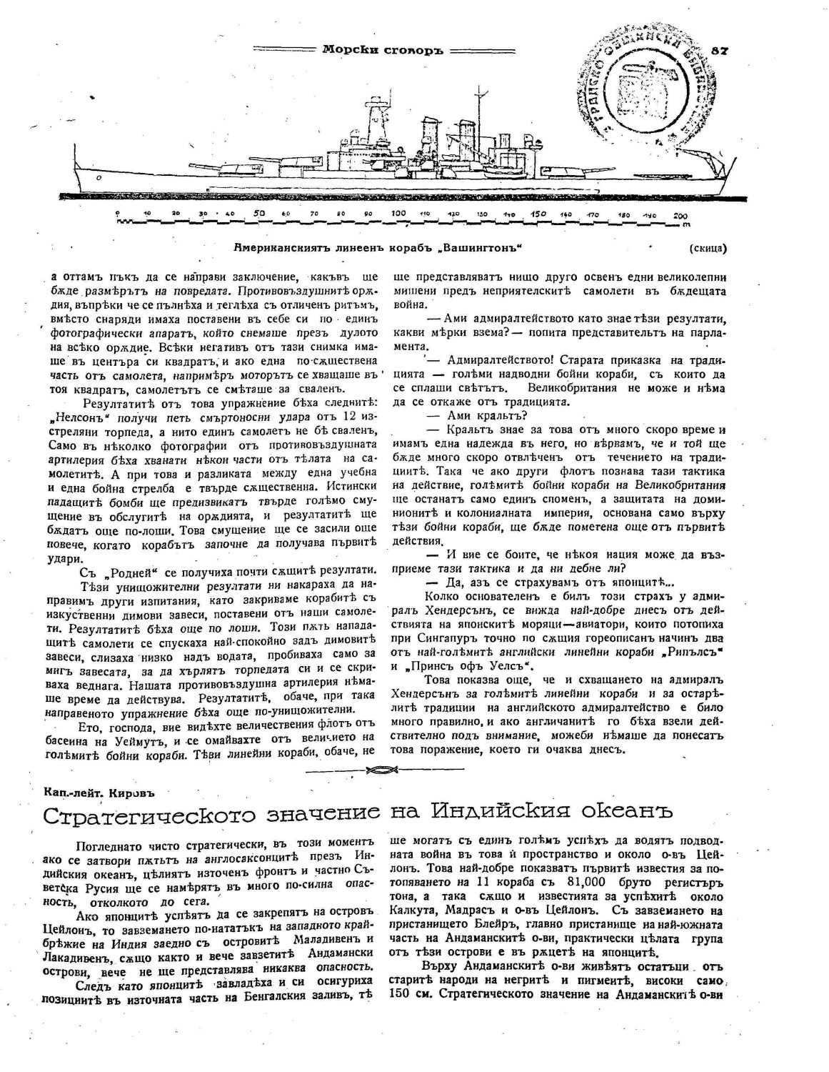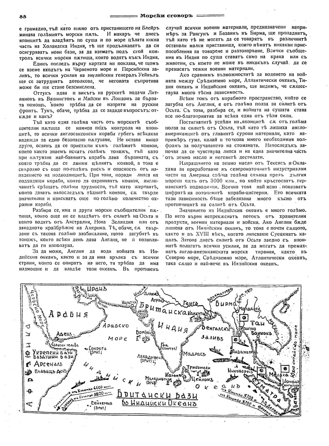 Киров, В. . Стратегическото значение на Индийския океан / В. Киров. // Морски сговор (Варна,печ. Зора), XIX, No 5, 01/05/1942, с. 87-88. Приложения: карта.